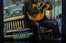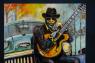 GONZO, Rob, artist. GONZO. "Mr. Lucky" John Lee Hooker. Acrylic and Collage on Canvas. Approximately 30 x 40 inches.